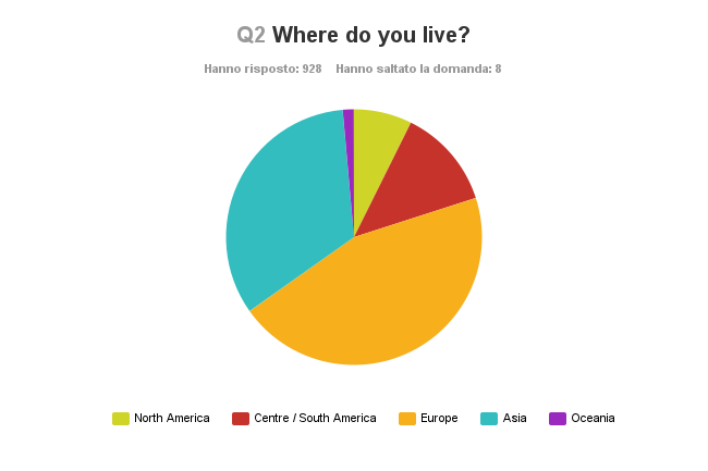 A livello di distribuzione geografica, l’Europa si attesta al primo posto, seguita da Asia e Sud America.