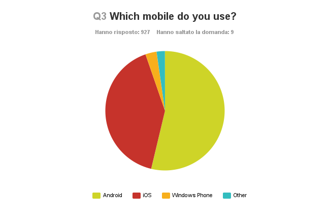 Per quanto riguarda il sistemo operativo impiegato, Android rappresenta il 54% degli utilizzatori, iOS il 40%. Questo dato evidenzia che gli utenti di iOS sono maggiori rispetto alla media mondiale di utenti.