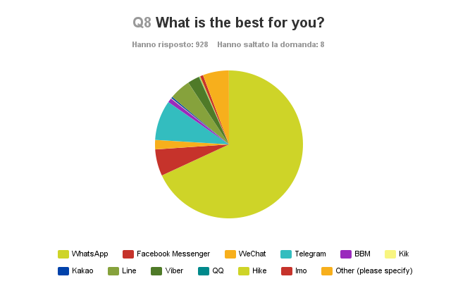 Eppure, alla domanda “Se tu potessi inventare una ChatApp, che caratteristiche dovrebbe avere?”, gran parte degli utenti ha risposto che dovrebbe poter includere i Social Network nelle App di Instant Messaging. Il 30% degli intervistati ha indicato in questa opzione la maggiore preferenza.